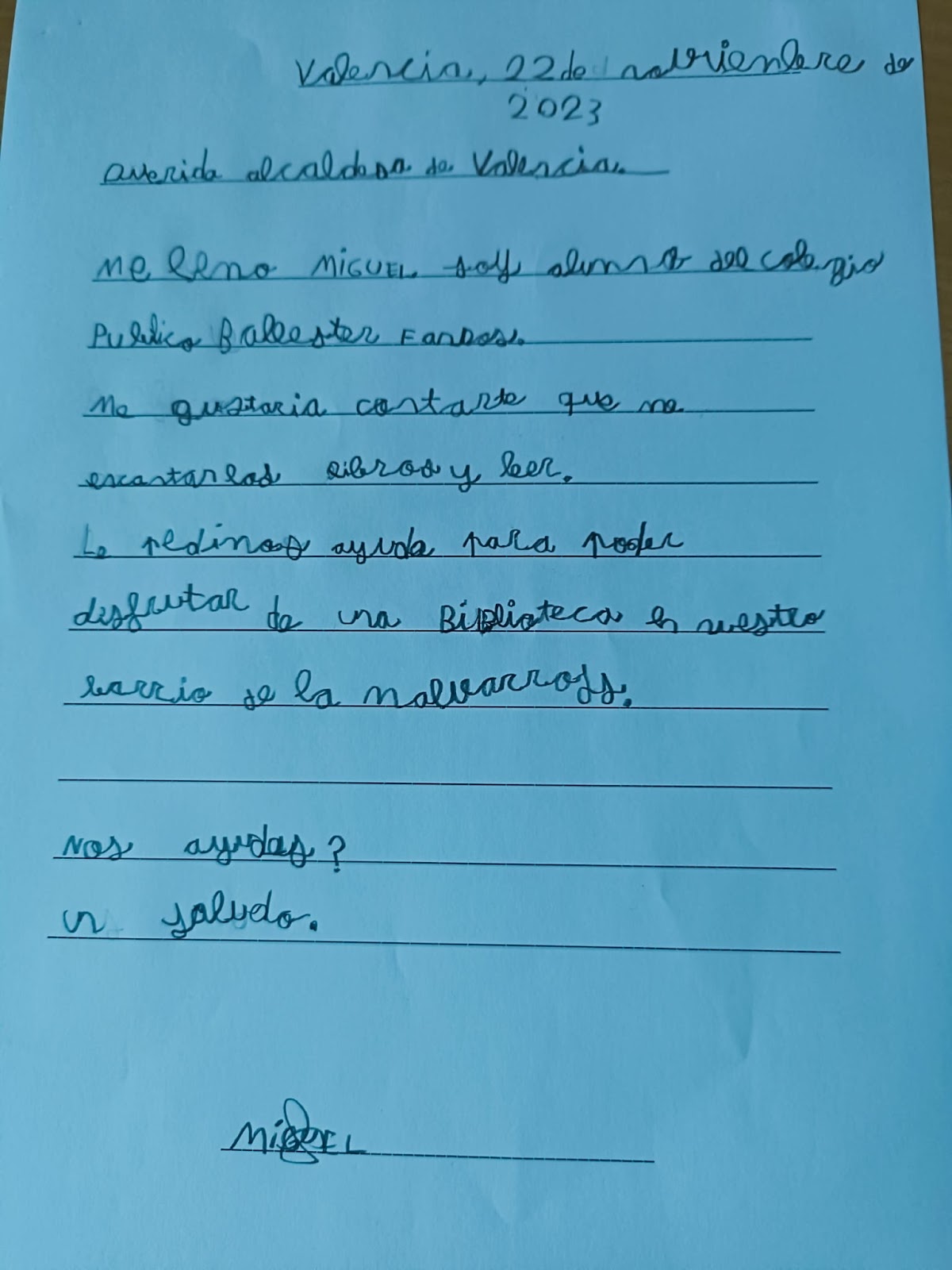 Alumnat de centres educatius públics de la Malva-rosa reclama per carta a l'alcaldessa una biblioteca per a 2024.