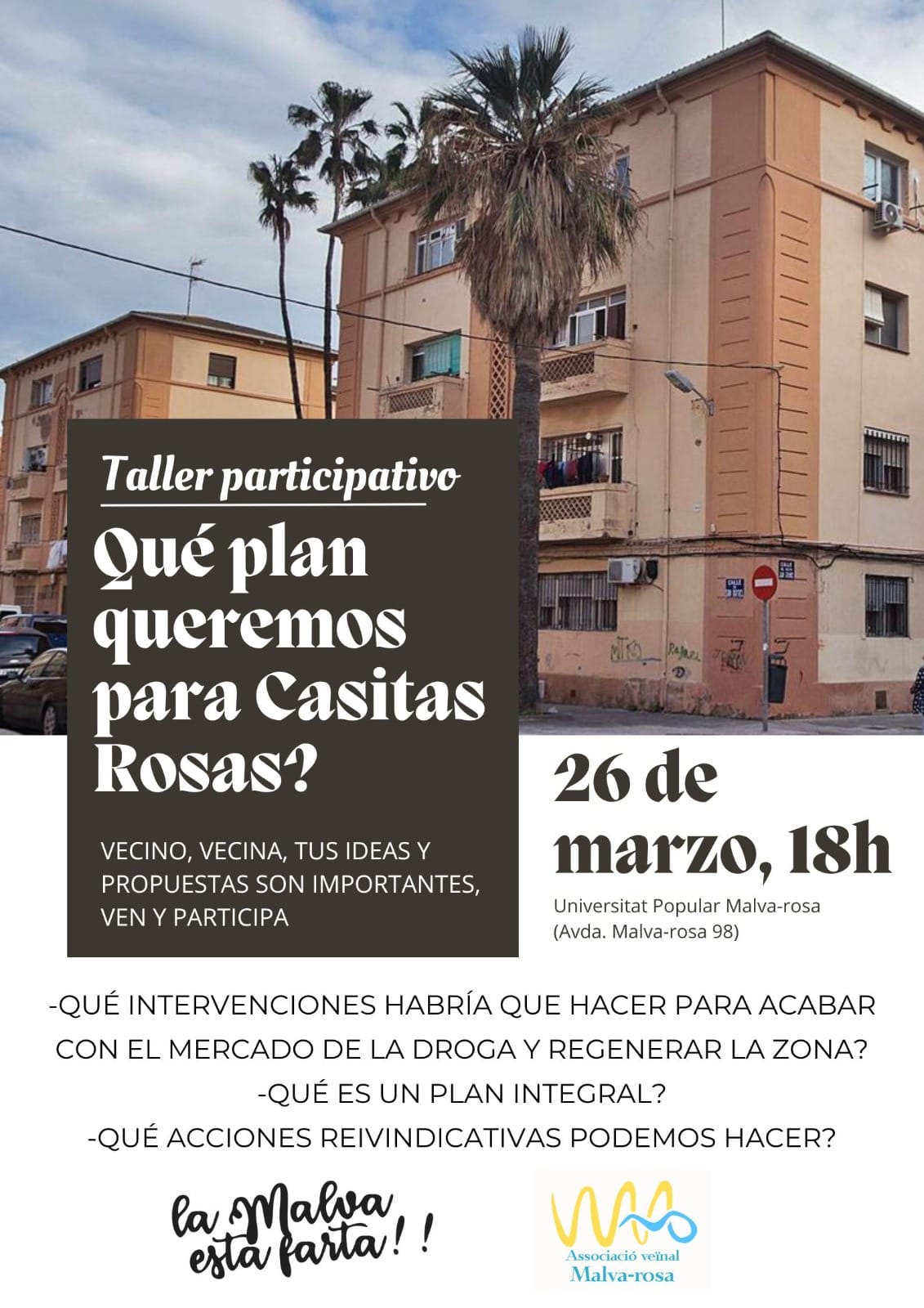 26 de març: Taller participatiu sobre el pla per a Casitas Rosas